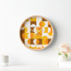 Orange Summer Yellow Dark Brown Retro Art Pattern Clock