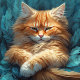 The color palette is a symphony of warmth and blues. The vibrant orange hue of the fur of the tabby kitten, radiates a sense of playfulness and charm. This lively color is complemented by the soft, dreamlike blue feathers that weave a magical aura into the design. The juxtaposition of these colors creates a harmonious balance that is both eye-catching and soothing.