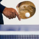 Orange tabby sleeping in hamper Ping-Pong paddle