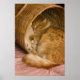 Orange tabby sleeping in hamper poster