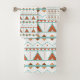 Geometric Aztec style pattern in teal and orange over white. These would go great with many different tribal or bohemian themed bathroom decors!