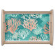 Orange Teal Coral Reef Beachy Nautical Serving Tray