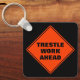 Fun classic orange diamond caution road sign warns of trestle work ahead in a thick black sans serif font. A thoughtful gift for a train or bridge enthusiast. Personalize this item by adding a name on the back.