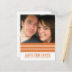 Simple and modern Triple Stripe Photo Save the Date Postcard featuring a chic striped border in orange and a photo template. This classy save the date postcard is perfect for announcing your wedding! Easy to customize, add your wedding details and replace the photo with one of your own. Click "Customize It" to find more personalization options.
