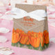 Bunches of orange tulips surround a kraft paper patterned tent style party favor box. Personalize the front flap and the back with your wording or delete it. Click CUSTOMIZE button to CHANGE the fonts and font colors. COORDINATING items available in our store. Wedding invitations, RSVP Cards, Reception Cards, Thank You Notes and more. See the entire collection at ---> http://bit.ly/2LGtAf0 <---
