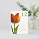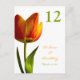 Use the personalize option to change the table number on these tulip wedding or special occasion table cards. For these, you have to change the table number on each card, add one copy to your cart, and repeat the process until you have all the cards you need. If you want to do more extensive changes including changing the font, font color, or background color, use the customize option. Vibrant and sunny orange and green.