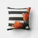 Orange Tulips & Black White Stripes Outdoor Pillow