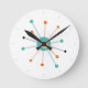 Orange Turquoise Atomic Age Starburst Mid Century Round Clock