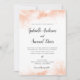 This stylish wedding invitation features a popular calligraphy for the names of the bride and groom. This modern invite is accented with an orange apricot colored watercolor along the top and bottom edge.