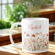 Enjoy a warm drink in style with this ceramic mug decorated with boho style watercolor wildflowers in an orange colorway. Personalize with your name or that of a loved one.