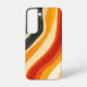 Bright orange waves surge dynamically over cream and black accents, creating a lively and vibrant abstract look.