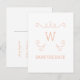 Modern and simple Whimsical Flourish Monogram Save the Date Postcard featuring an elegant swirl motif in orange. Easy to customize, simply add your initial and wedding details in the text fields provided. Click "Customize It" to find more personalization options.