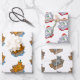 Orange, White and Gray Christmas and Birthday Cat Wrapping Paper Sheets