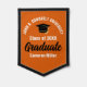 This modern orange and white custom graduation pennant features classy typography of your university or college name for the class of 2025. Customize with your graduating year under the chic handwritten script and black grad cap for great personalized congratulations graduate party keepsake decor.