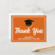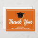 This modern orange and white custom graduation thank you postcard features classy handwritten thanks above your high school or college name for the class of 2025. Customize with your name under the black grad cap for great personalized graduate thank you postcards.