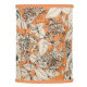 This is a graphic pattern of white vintage garden flowers on an orange background.