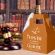 This modern custom law school graduation party favor box features the college graduate name in elegant white script on the orange background for the class of 2026. Customize with your university under the scales of justice with a graduation thank you message for a new lawyer.