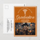 This orange custom medical school graduation party postcard invitation for a nurse or doctor features classy white typography under a medical caduceus and your college name for the class of 2024. Customize with your graduating year under the elegant calligraphy for a great personalized university graduate invite postcards.
