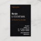 Orange white monogram portrait format business car business card