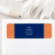 Orange and white polka dot pattern with royal blue accent. Small white polka dots on orange and in the middle there is a royal blue rectangle to add your text.