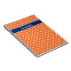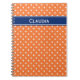 Personalized orange and white polka dot pattern with royal blue accent notebook. Small white polka dots on orange and in the middle there is a royal blue band to put your custom name in.