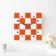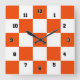 Orange White Squares Decorative Wall Clock
