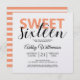 Orange White Stripes Modern Script Sweet 16 Invitation