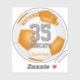 This team colors soccer sticker for boys or girls features the realistic image of a soccer ball that has orange and white panels - customize the player's name, jersey number, team name and mascot name - by katz_d_zynes