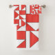 Orange White Triangle Square Geometric Bath Towel Set originally designed by Nisha Prabhu. Transform your bathroom into a stylish retreat with our Orange & White Triangle Square Geometric Bath Towel Set. This set combines modern aesthetics with practicality, featuring a striking geometric pattern of bold orange triangles and squares against a crisp white background, perfect for adding a splash of color and contemporary flair to your bathing experience. The vibrant geometric print gives a fresh and modern look to your bathroom, making these towels not just functional but also a stylish addition to your home decor.