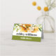 This stunning wedding escort place card features a gorgeous rhododendron branch with orange yellow flowers positioned at the top. To add a touch of elegance, olive green is incorporated at the bottom, creating a sophisticated look that complements the bold typography of the simple text. This combination results in a contemporary and fashionable design that is bound to leave a lasting impression on your guests.