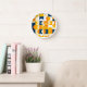 Orange Yellow Dark Navy Blue Retro Art Pattern Clock