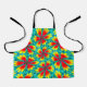 Great color and even though I ordered the kid size, it covers well enough to use during the holidays. I am not a big woman and prefer a shorter apron. I stand 5"6" and the length of the garment goes to mid-thigh. The tie straps fit well at my waist and even though there is no neck strap adjustment, the opening is plenty big enough. I am happy with the size and fit. I am sharing my apron with my 10 year old grandson, too! The color is vibrant and looks good, as shown on the website. The stitching looks strong and reinforced. Photographed is front side and back side of the apron, reinforced straps and coloring. My phone camera may not be the best at showing the details.