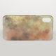 This phone case design features an abstract mist-like pattern with colors like orange, yellow, and gray.