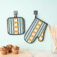 Orange Yellow Suns Teal Stripes Oven Mitt & Pot Holder Set