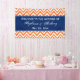 Orange chevron pattern with royal blue accent. Orange and white zigzag pattern. Wedding welcome banner.