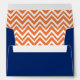 Orange chevron pattern inside the envelope. The exterior of the envelope is royal blue.