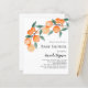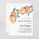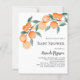 A white. Decorated with watercolored oranges. Personalize and add a name and party details.