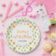 This beautiful and elegant plate features watercolor oranges, daisies and foliage. The text combines handwritten script and serif fonts for a stylish and modern look. This is perfect for a spring or summer rustic birthday party.