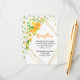 This beautiful and elegant wedding reception enclosure card features watercolor oranges, daisies and foliage on a gold geometric frame. The text combines handwritten script and serif fonts for a stylish and modern look. This is perfect for a summer rustic wedding.