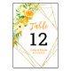 This beautiful and elegant wedding table number sign features watercolor oranges, daisies and foliage on a gold geometric frame. The text combines handwritten script and serif fonts for a stylish and modern look. This is perfect for a spring or summer rustic wedding.