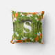 Oranges Fruit Country Autumn Green Wood Monogram Throw Pillow