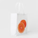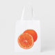 These reusable bags feature an appetizing painting of two oranges on each side. One orange is whole and ripe, and is behind an orange that is sliced in half. This fruit themed painting is by CherylsArt and can be customized at Zazzle.