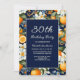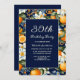 Oranges White Flowers Navy Blue 30th Birthday Invitation