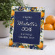 Oranges White Flowers Navy Blue Birthday Welcome Pedestal Sign