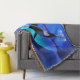 A quality printed throw has its advantages. This is a much finer weave throw than its loopier cousins, and though lighter, it is worth the investment for custom room accessorizing. The back is much prettier than the typical brown, and the fringe on the long sides very vivid, the selvage nicely done. Before photographing, I washed the throw in cold water, delicate, with a thicker woven throw the same size. On tumble dry low, this throw was dry in half the time as the other. This is a very practical quality if you use throws for furniture covers or to wrap up in frequently. The sleekness of the fabric makes it a great layer for accenting or protecting without the feeling of sitting on too much stuff. Perfect for napping or when you feel a light chill coming on. The color printing is beautiful and on this fabric, matched the design and color of my Photoshop image. This is an advantage for blending room fabrics and colors. The fringe on the short sides prints the colors from the design image and therefore varies from the side fringe. I streaked a white fractal line through the plaid pattern to give the illusion of weaving. This printed as crisp as an illusory thread, and put some white in the short side fringe, showing another advantage of print vs loomed- for artistic purposes, line lines, detail, and color integrity can be planned and preserved. My loomed throws have color limitations and more of a needlepoint texture. Print throws reproduce an exact image. The throw felt a little stiff straight out of the package, but this went away in the first delicate wash. Of course I searched the wash water for ink or bleeding and there was none.