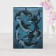 Nine killer whales swim together on the front of this card.