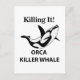Orca Killer Whale Killing It Funny Postcard original design by Nisha Prabhu. Dare to be unique with our "Orca Killer Whale Killing It" funny postcard! This vibrant and humorous design is perfect for sending a smile to friends, family, or colleagues. Whether you're using it for a quirky greeting, a lighthearted invitation, or just to share a cheerful note, this postcard is sure to make a splash! Featuring a playful orca whale along with the catchy phrase "Killing It," this postcard captures attention and brings a touch of humor to any message you want to share. Ideal for various occasions—be it birthdays, thank-you notes, or just a friendly hello. It's a fun way to connect with others and brighten their day.