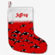 Perfect! Exactly what I ordered! I uploaded a picture of my blue chow, and the screen print was incredible. the back side of the stocking was the red and black checkered print. my puppy's name was also printed on the cuff of the stocking. PERFECT! Highly recommend this product! My puppy's name was screen printed onto the cuff of the stocking, the font was perfect!
