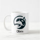 Personalized mug featuring a stylish and modern round illustration of an orca with a human hand showcasing orca love.