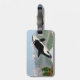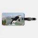 This luggage tag is decorated on the back with a painting of a Killer Whale breaching with the Olympic Mountains in the background.